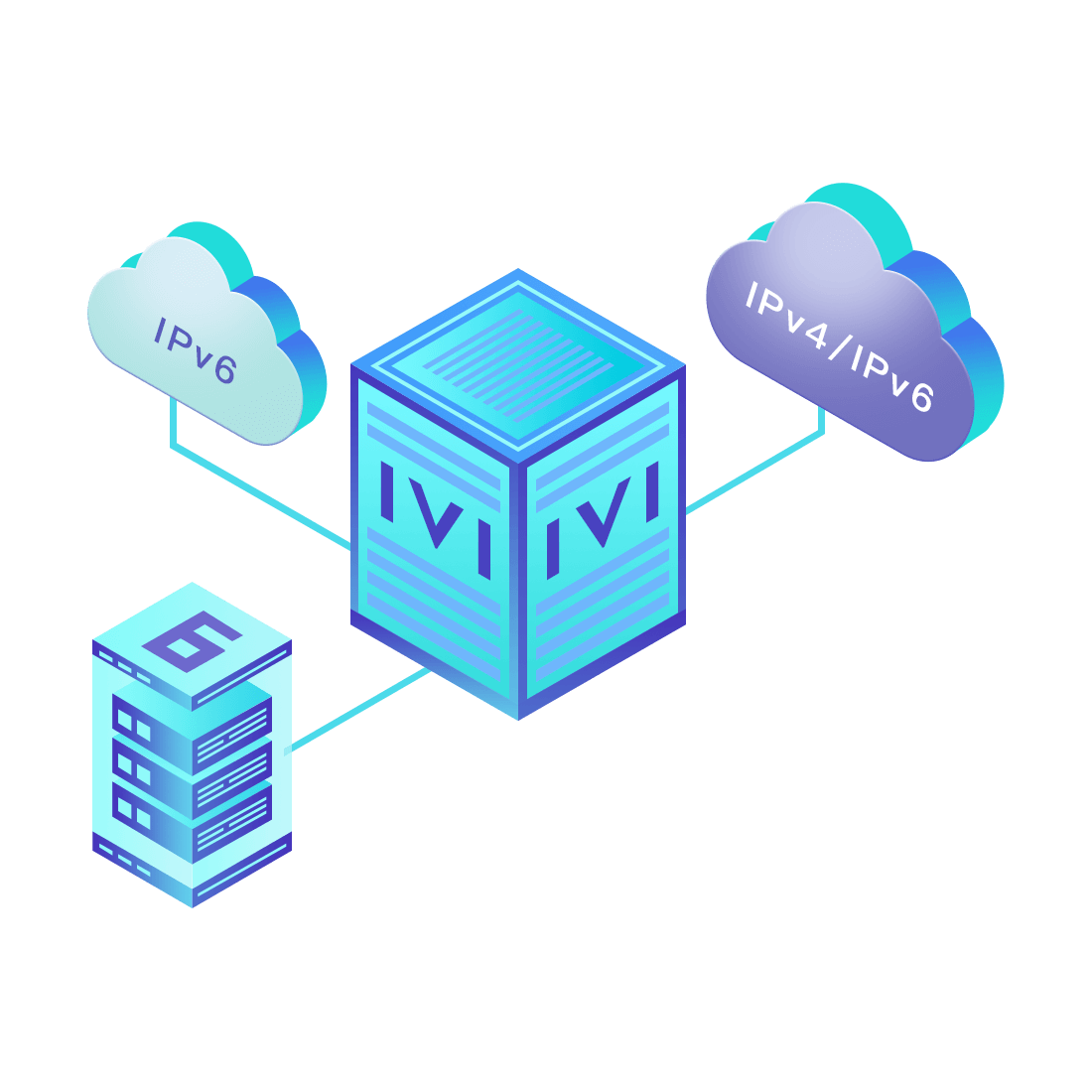 在IPv6演進的過程中,傳統的雙棧技術方案的實施代價很大,需要解決所有三層以上網絡設備,業(yè)務系統、用戶上網管理計費等系統的IPv6全面升級改造問題,而且會帶來巨大的安全風險。我們從安全性、性價比、平滑過渡特性、可擴展性等方面著手,基于IVI無狀態(tài)翻譯技術,為不同過渡階段的不同需求的用戶定制最合適的IPv6升級解決方案。